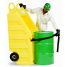 El portatambor con contención de derrames proporciona el manejo y surtido conveniente de químicos peligrosos en interiores. La unidad portátil con ruedas transporta los tambores fácilmente dentro del taller; permite que una personal traslade y surta el contenido de un tambor lleno. El diseño ergonómico con característica basculante/detención minimiza el esfuerzo de la espalda